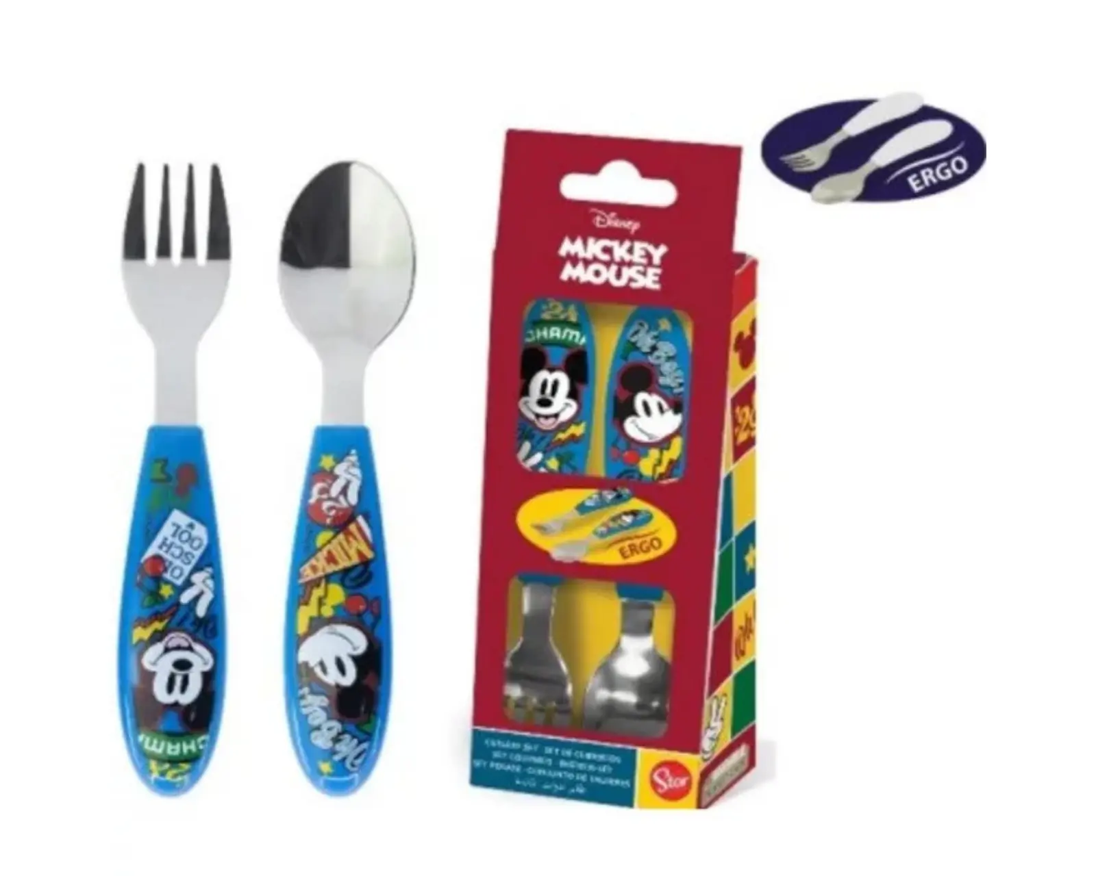 Komplekt koosneb metallist lusikast ja kahvlist, mille ümar kuju võimaldab lapsel lõbusalt ja ohutult õppida kasutama täiskasvanute söögiriistu söömise ajal.
